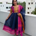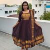 This beautiful long frock is made from pure Kaanchi cotton. Rich and elegant look. The dress has a flared design, and  full sleeves. It is comfortable to wear and perfect for festivals, family functions, or casual traditional days.