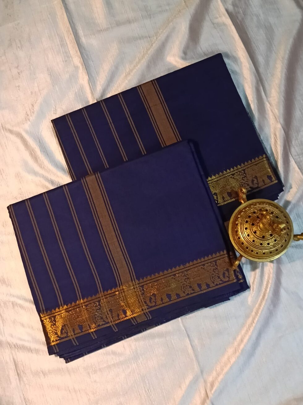 Step into timeless elegance with this exquisite Kaanchi cotton saree, crafted with traditional weaving techniques and adorned with rich zari motifs along the borders and pallu. The soft yet structured cotton fabric offers all-day comfort, while the intricate detailing adds a regal touch. Perfect for festive occasions, temple wear, or traditional gatherings. Comes with a matching running blouse piece for a complete ethnic look.