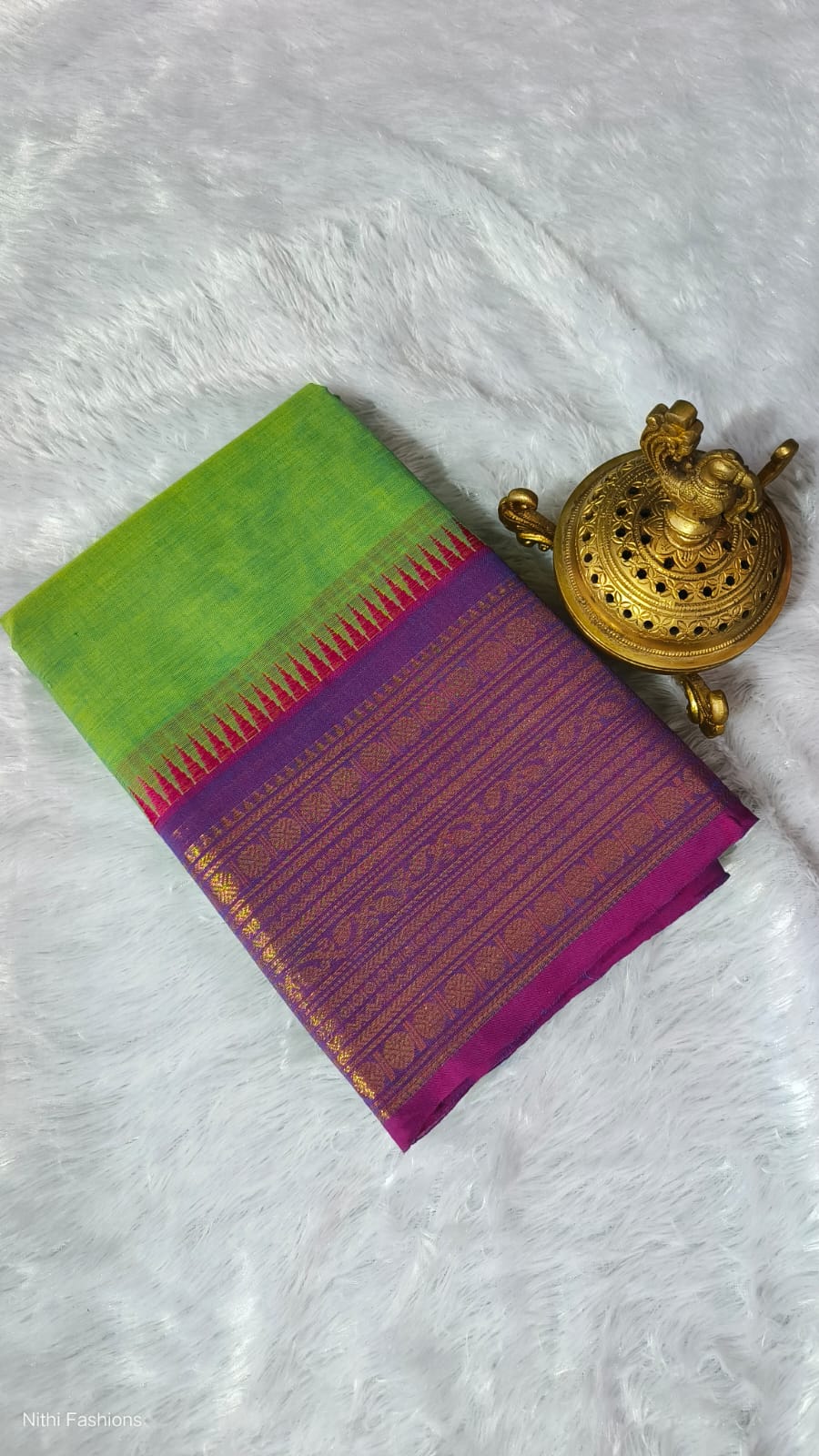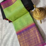 Elevate your traditional look with this elegant Kaanchi cotton saree, crafted with a rich zari border featuring intricate motifs. Designed for comfort and sophistication, this saree drapes beautifully, making it perfect for festive occasions, functions, and everyday elegance. Comes with a matching blouse piece to complete the look.