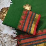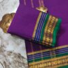 This Kaanchi cotton saree is made from soft, breathable cotton and comes with a traditional zari border. It is comfortable to wear and suitable for everyday use as well as special occasions.