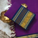 This Kaanchi cotton saree is made from soft, breathable cotton and comes with a traditional zari border. It is comfortable to wear and suitable for everyday use as well as special occasions.
