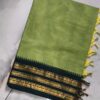 This Kaanchi cotton saree is made from soft, breathable cotton and comes with a traditional zari border. It is comfortable to wear and suitable for everyday use as well as special occasions.