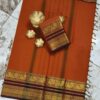 This Kaanchi cotton saree is made from soft, breathable cotton and comes with a traditional zari border. It is comfortable to wear and suitable for everyday use as well as special occasions.