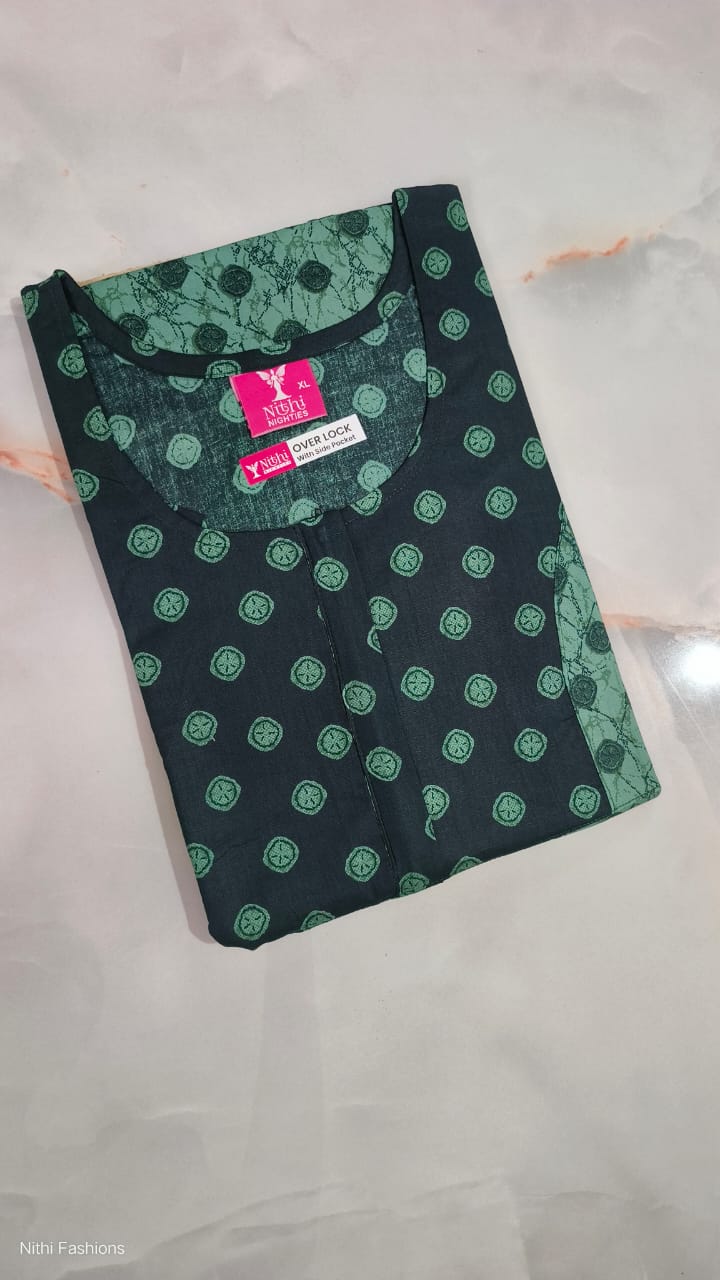 Each nightie is finished with strong overlock stitching, ensuring long-lasting durability and a neat look. For added convenience, it comes with a practical side pocket, perfect for keeping small essentials close at hand.