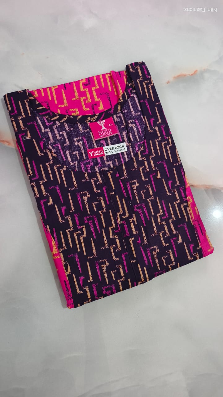 Each nightie is finished with strong overlock stitching, ensuring long-lasting durability and a neat look. For added convenience, it comes with a practical side pocket, perfect for keeping small essentials close at hand.