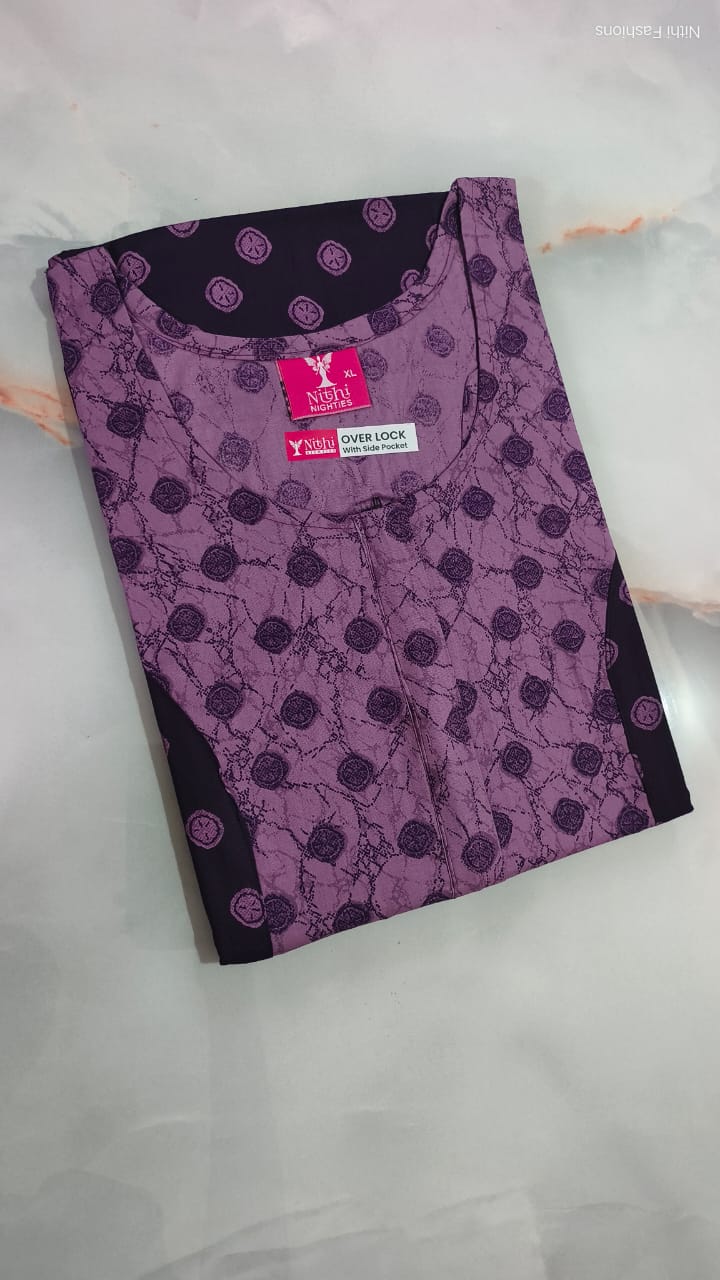 Each nightie is finished with strong overlock stitching, ensuring long-lasting durability and a neat look. For added convenience, it comes with a practical side pocket, perfect for keeping small essentials close at hand.
