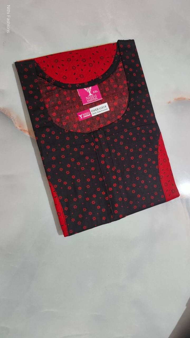 Each nightie is finished with strong overlock stitching, ensuring long-lasting durability and a neat look. For added convenience, it comes with a practical side pocket, perfect for keeping small essentials close at hand.