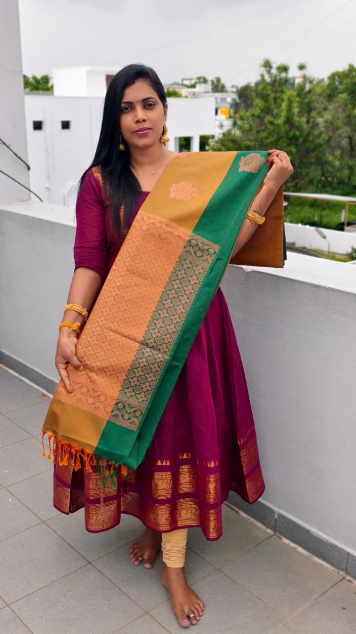 • Design: Intricate zari weaving with contrast border and pallu