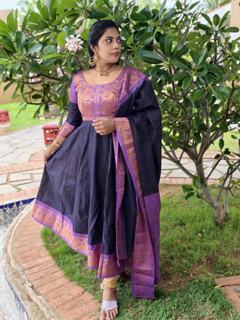 Sungudi Cotton Frock with Shawl – Traditional Wear